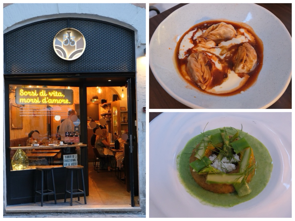 ローマ旧市街、パンテオンから徒歩圏内の人気レストラン「53 Untitled」を訪問。ミシュランのビブグルマンにも選ばれた実力店で、イタリア旅行最後の夕食を体験しました。テラス席の様子や予約状況、実際に感じた注意点までリアルに紹介します。 -