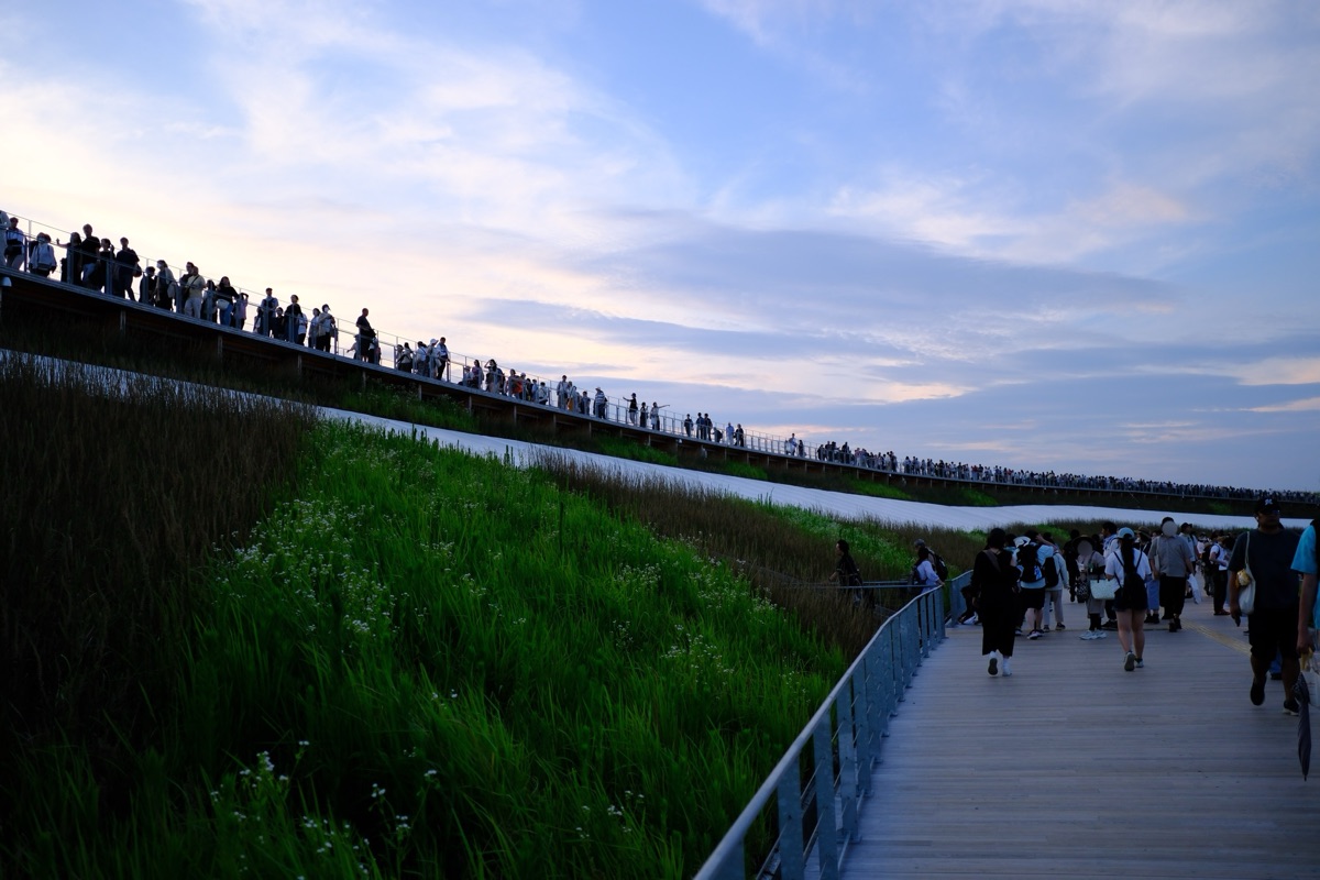 最後は夕焼けに染まる大屋根リングを歩いて、この日の締めくくりとしました。