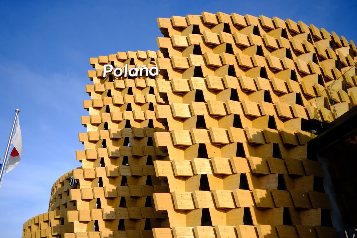 ポーランドパビリオンも大屋根リングと連動しているような木が特徴的で、内装にもその要素を見ることができます。