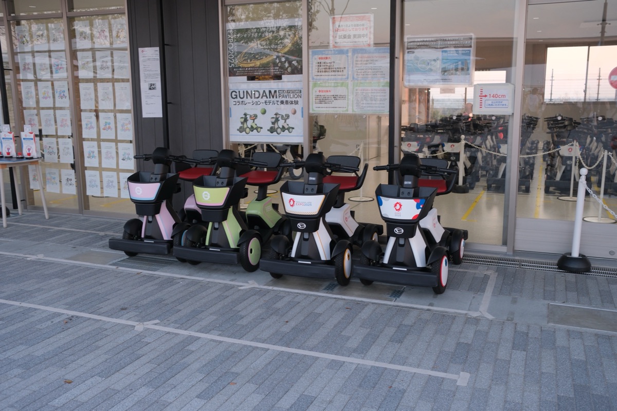 西ゲートの付近で見つけたのが、パーソナルモビリティーの試乗コーナーでした。万博前半ではこのパーソナルモビリティーが会場内を走っているのをよく見かけましたが、そういえば最近は走っていないような気がします。