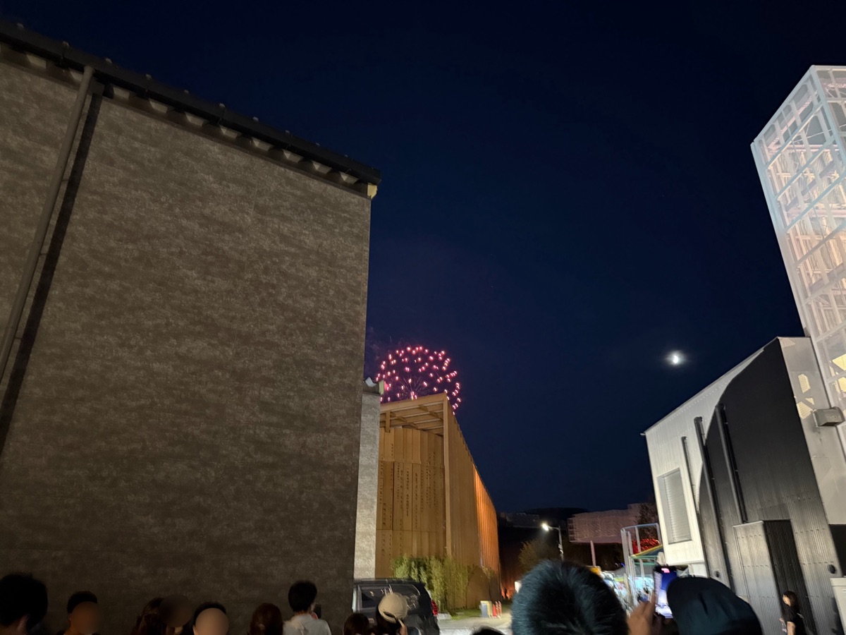 上で座ってる人たちは花火待ちの人なのかな?