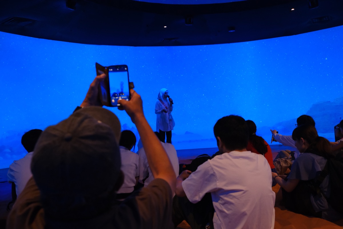 砂漠の部屋では、みんなが砂の上に座ってシアターを鑑賞しました。ヨルダンのスタッフのお姉さんが日本語が上手すぎてびっくりしました(笑)