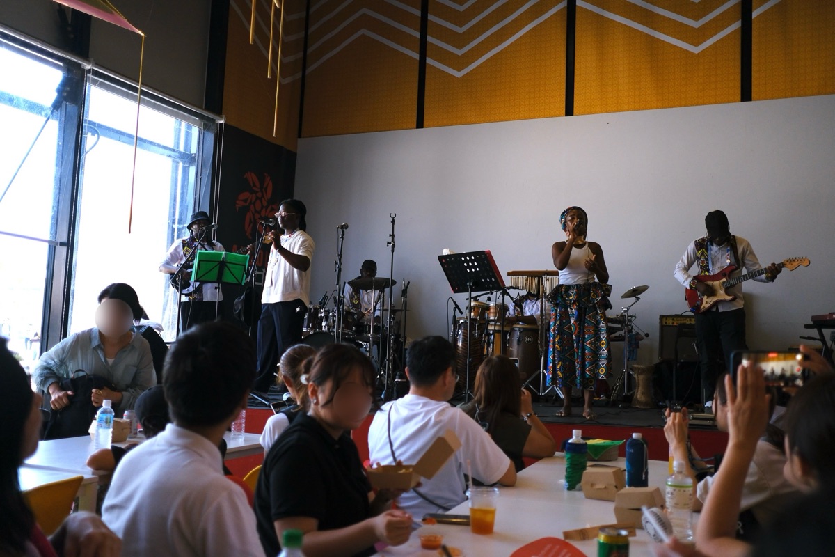 中盤ではみんなで円になって踊ります。ステップを踏むのですが、そのタイミングが日本人からするとかなり独特で、最後までマスターできませんでした(笑)