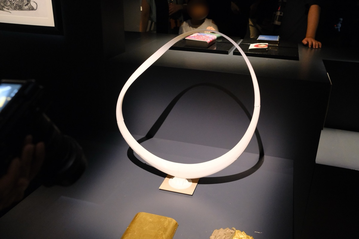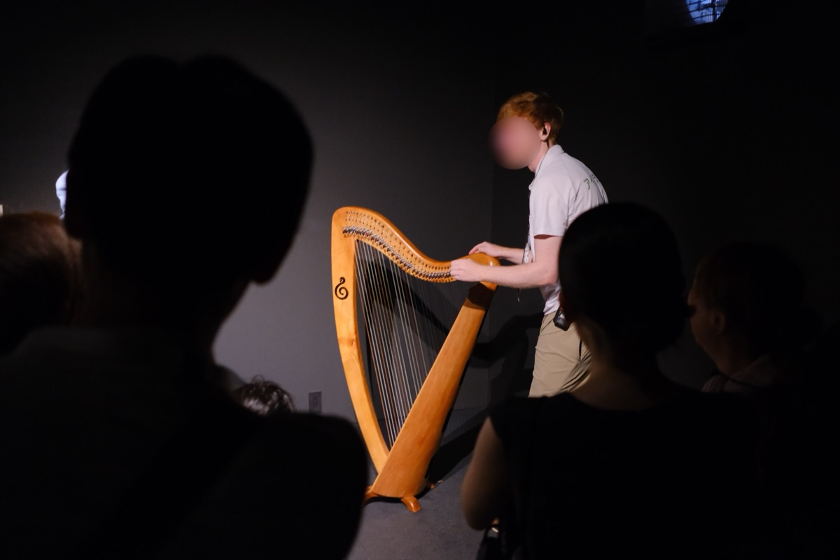 2つ目の部屋は芸術作品やハープの展示です。こちらの作品は、アイルランドパビリオン前に展示されている大きなオブジェと同じものです。アイルランドの家具デザイナー兼職人、ジョセフ・ウォルシュ氏の作品です。