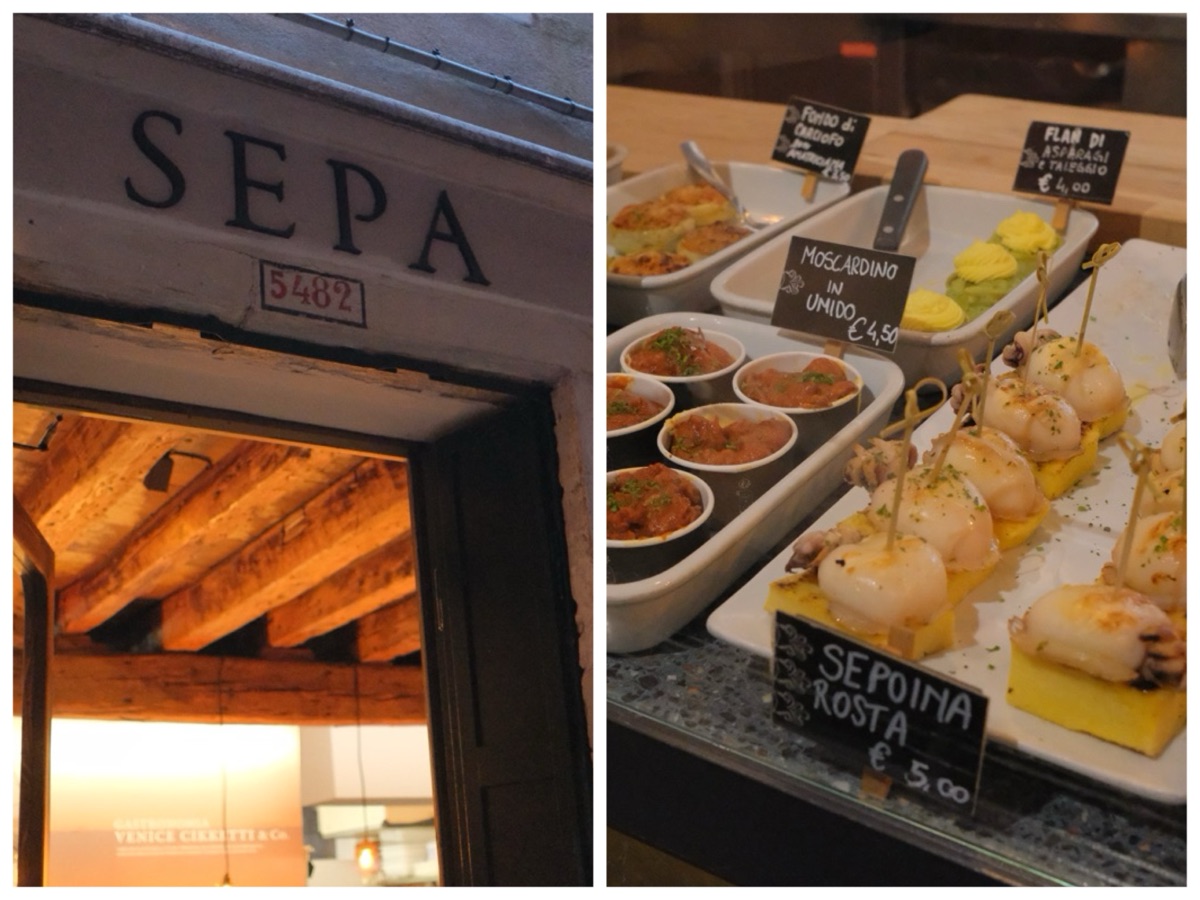 昨日に引き続きチケッティ(ヴェネツィアの小皿料理)を楽しみたいということで、やってきたのはこちらの「SEPA」。